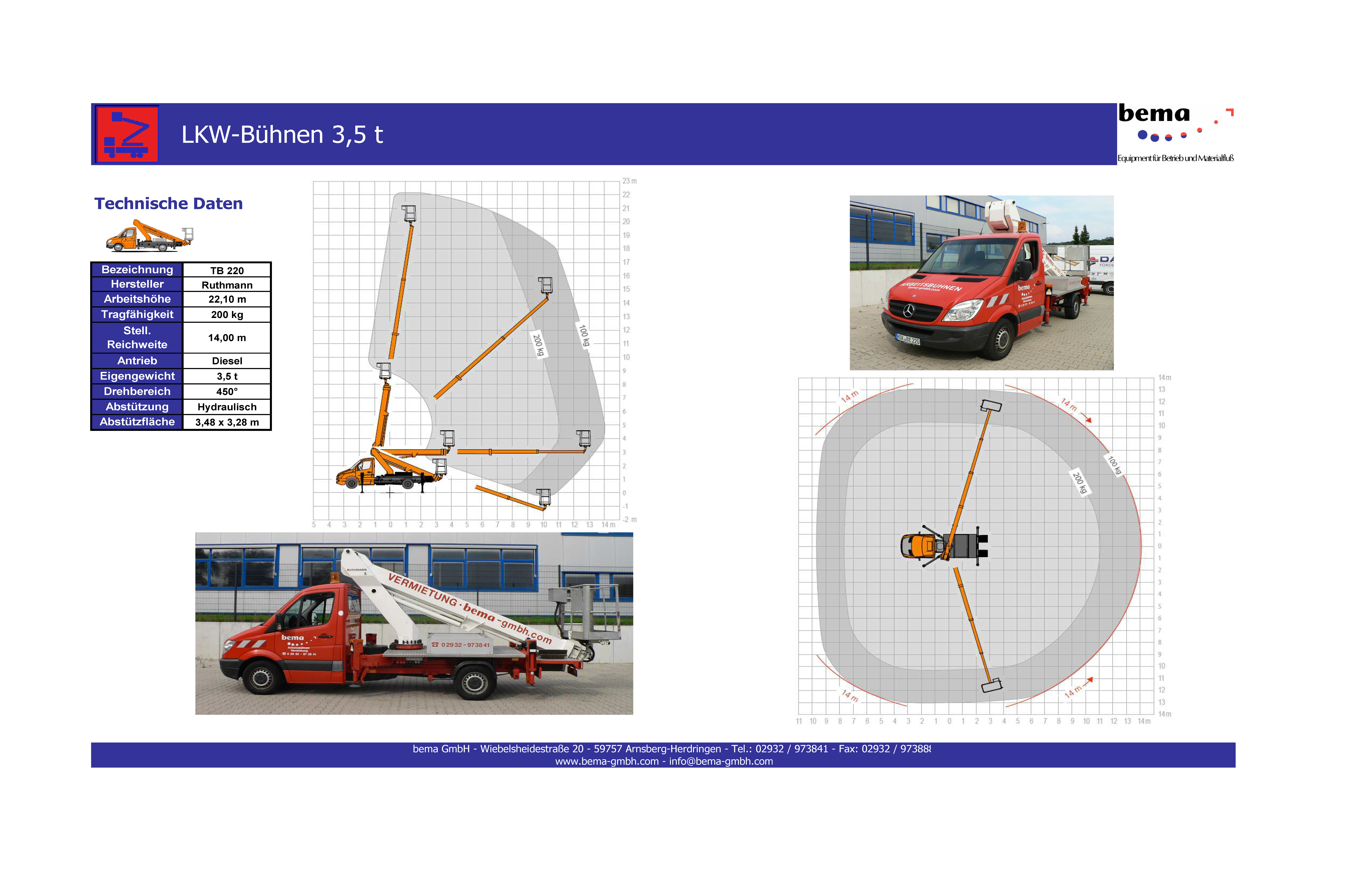 Ein Teil unserer LKW Arbeitsbühnen kann mit einem zulässigen Gesamtgewicht von 3,5t mit jedem PKW Führerschein gefahren werden.